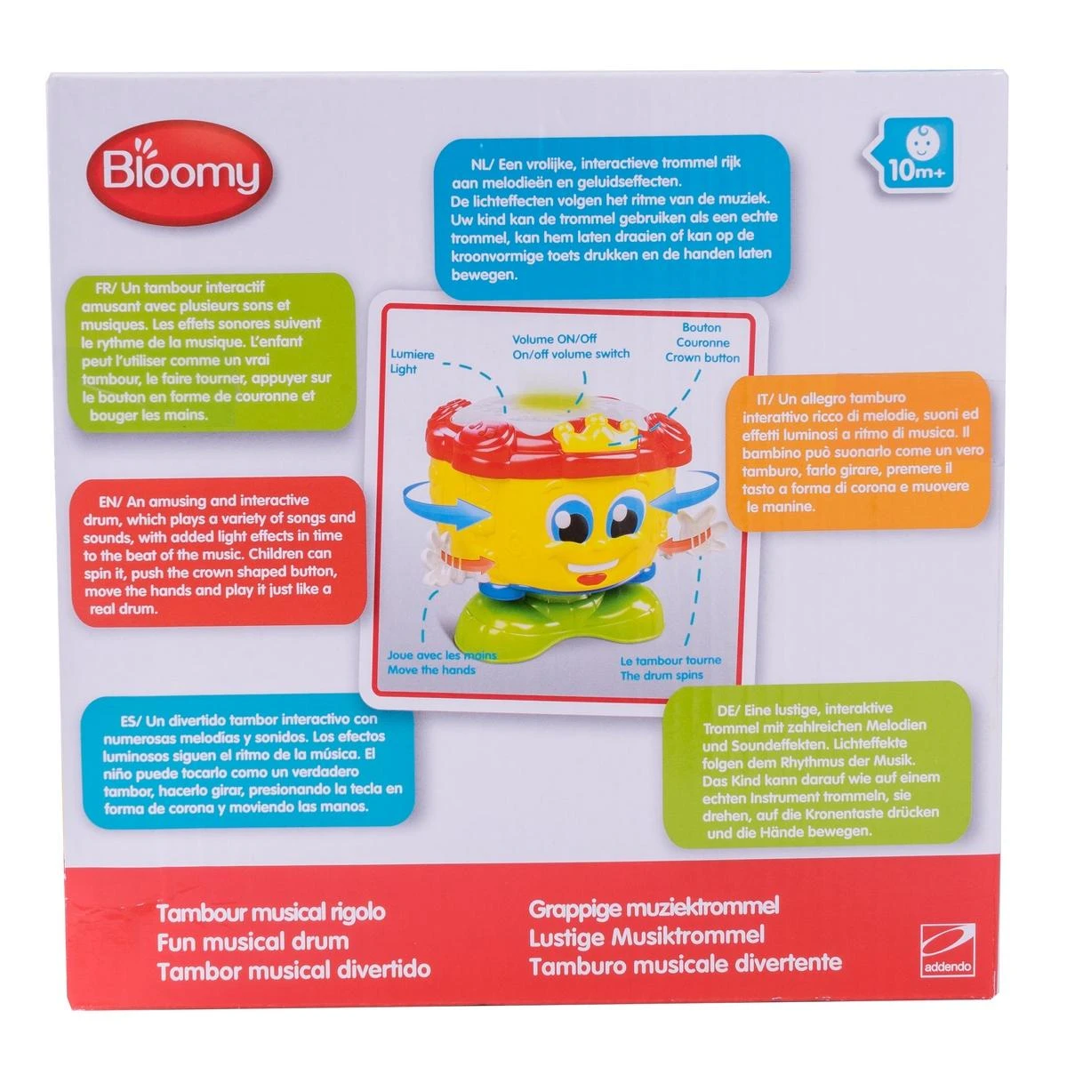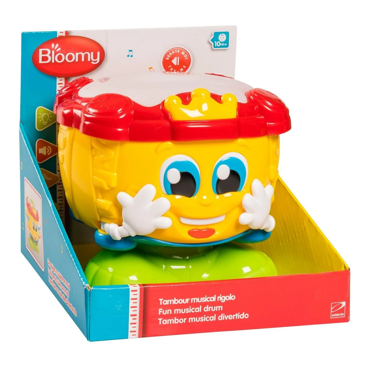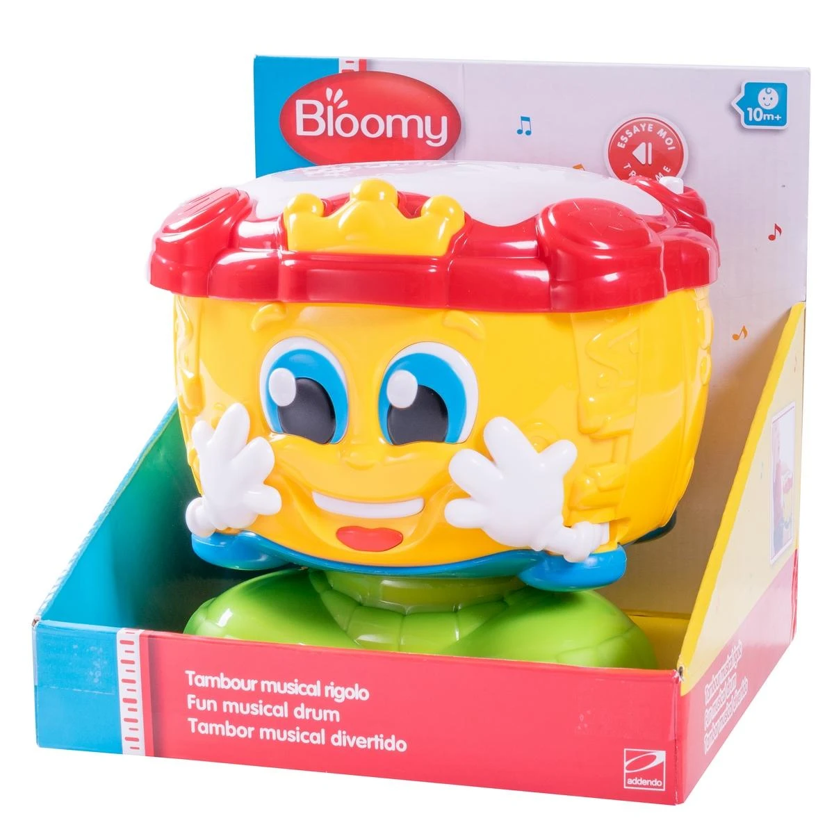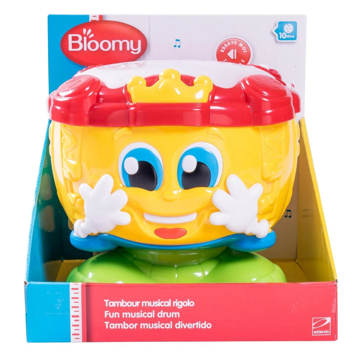 Le tambour musical de Bloomy est un tambour interactif amusant avec plusieurs sons et musiques pour amuser bébé. Les effets sonores suivent le rythme de la musique. L’enfant peut l’utiliser comme un vrai tambour, le faire tourner, appuyer sur le bouton en forme de couronne et bouger les mains. Un bon moyen d’éveiller ses sens !