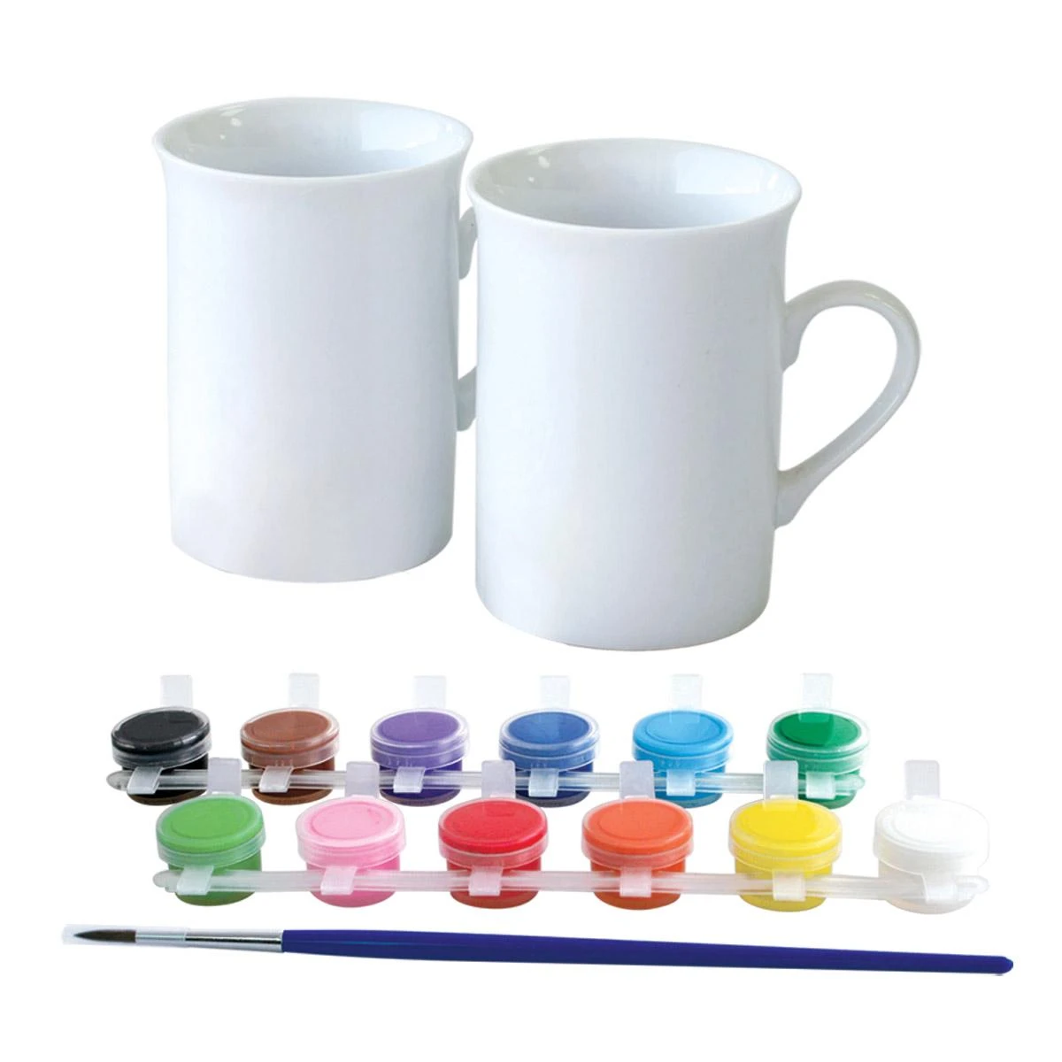 Contenu : 6 pots de peinture, 1 pinceau, 2 tasses en porcelaine.
