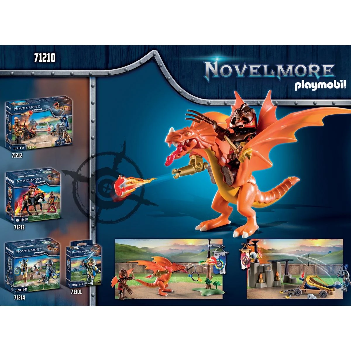 Attaque du dragon de feu ! Il tournoie dans le ciel, menaçant la population. Au sol, se déroule le tournoi Chevalier Novelmore contre Combattant Burnham Raider Playmobil Novelmore 71210. Le chevalier bleu réussira-t-il à le vaincre tout en affrontant son adversaire ? Avec l’imagination débordante de votre enfant, tout est possible !