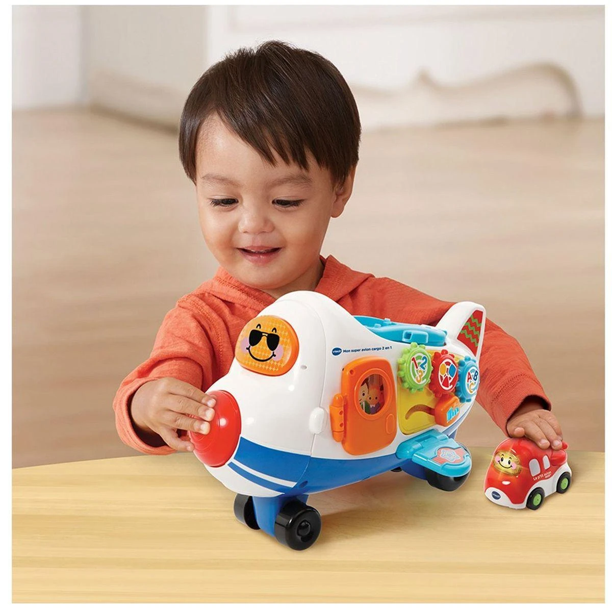Les apports éducatifs sont nombreux lorsque votre enfant joue avec Mon super avion cargo en 2 en 1 Tut Tut Bolides de Vtech. Les phrases et chansons exprimées par Timon le p’tit avion permettent à votre enfant d’enrichir son vocabulaire. Les mélodies entraînantes, les voix dynamiques et les sons réalistes sont parfaits pour animer les histoires créées par votre enfant. C’est donc avec enthousiasme qu’il développe son imagination grâce à Mon super avion cargo en 2 en 1 Tut Tut Bolides ! Pour terminer, jouer avec les engrenages, la porte, et faire rouler l’avion cargo favorise le développement de la motricité de votre enfant.