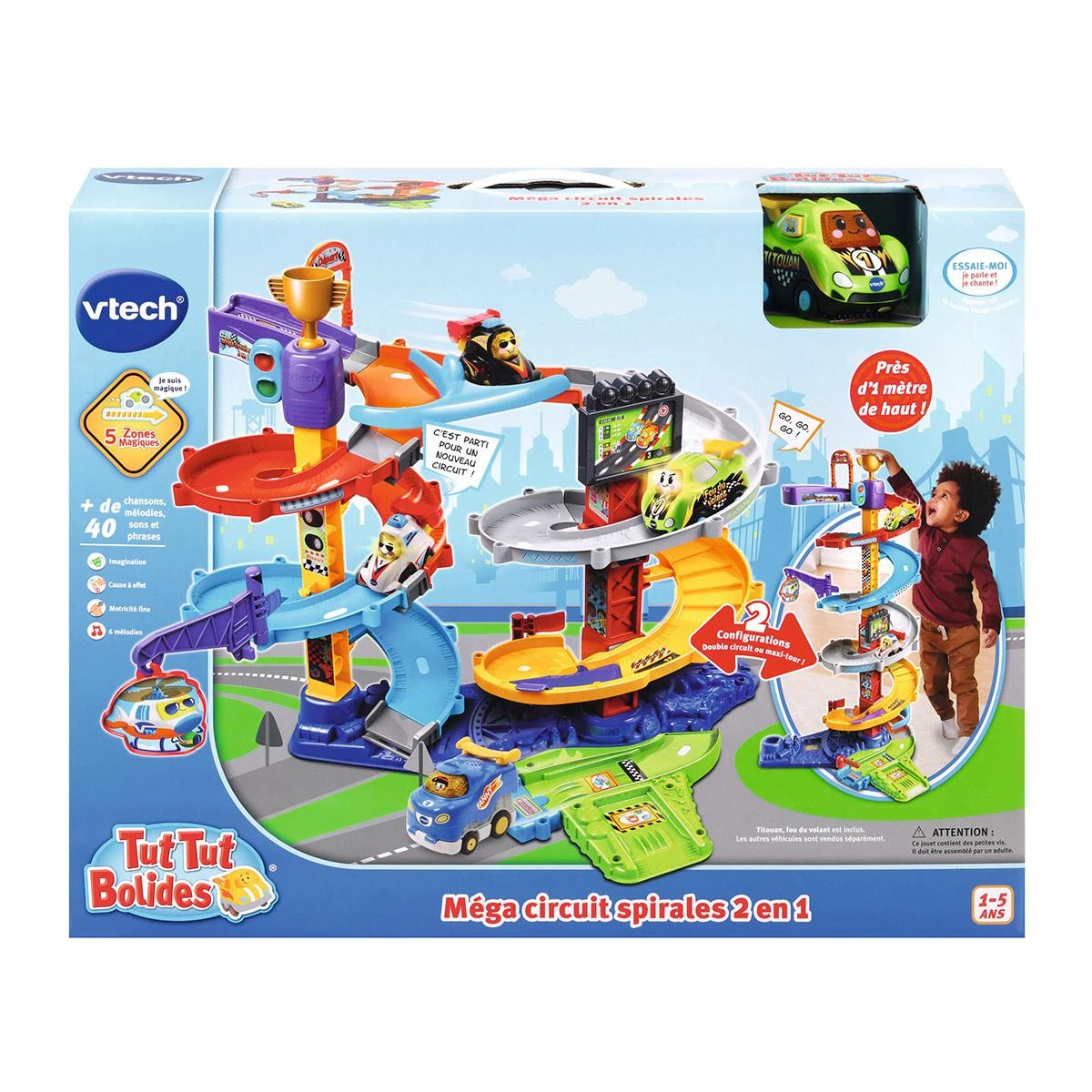 Le Tut Tut Bolides : Méga circuit spirales 2 en 1 de Vtech permet à votre enfant de faire le plein d’aventures dès son plus jeune âge ! Le Tut Tut Bolides : Mega circuit spirales 2 en 1 peut se jouer assis ou debout selon comment est installée la piste.